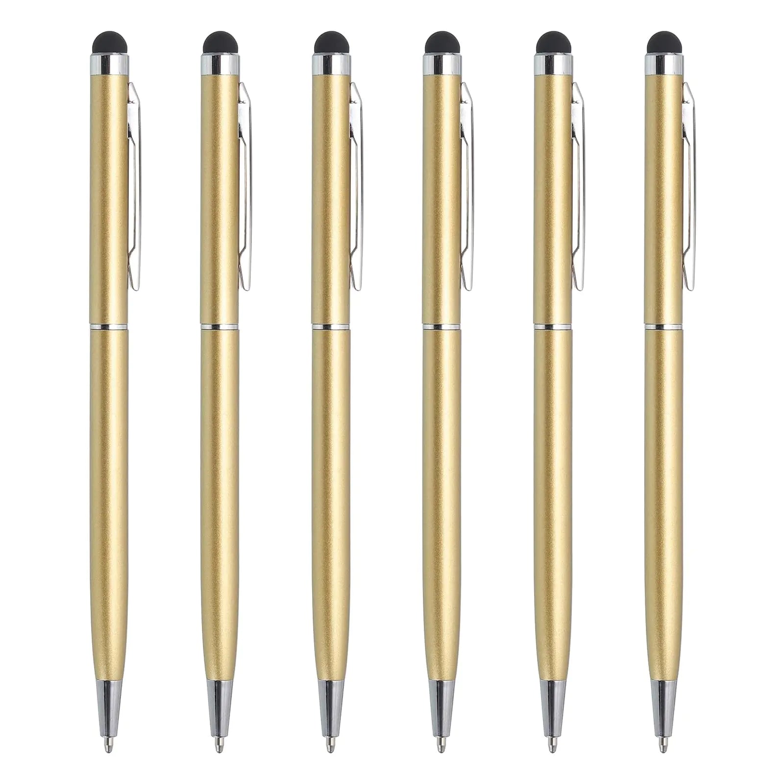 MECCANIXITY 6pcs Metal Stylus Pen Ballpoint Pen 2 in 1 Universal Retractable Ink Pen with Stylus Tips for All Capacitive Touch Screen Device Gold